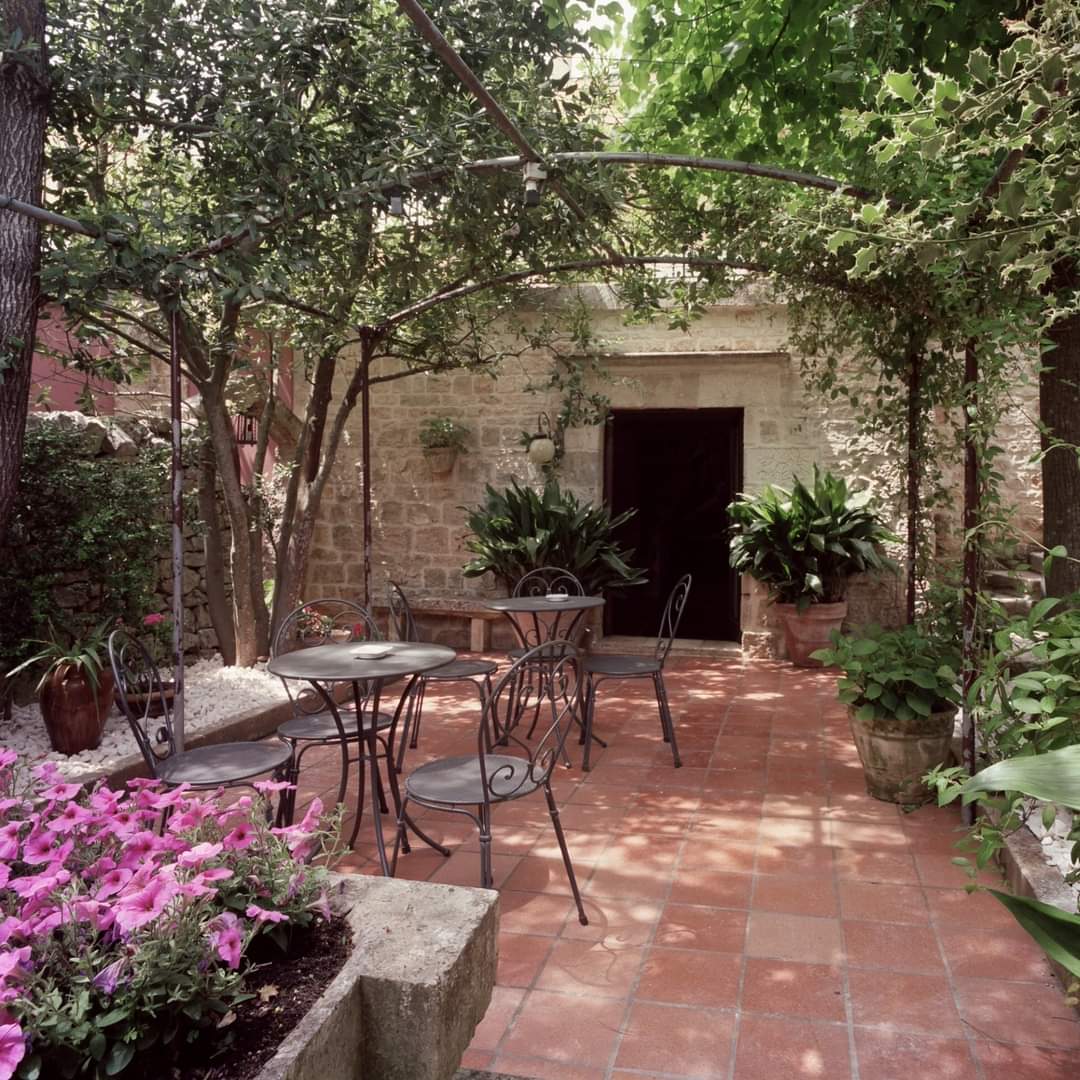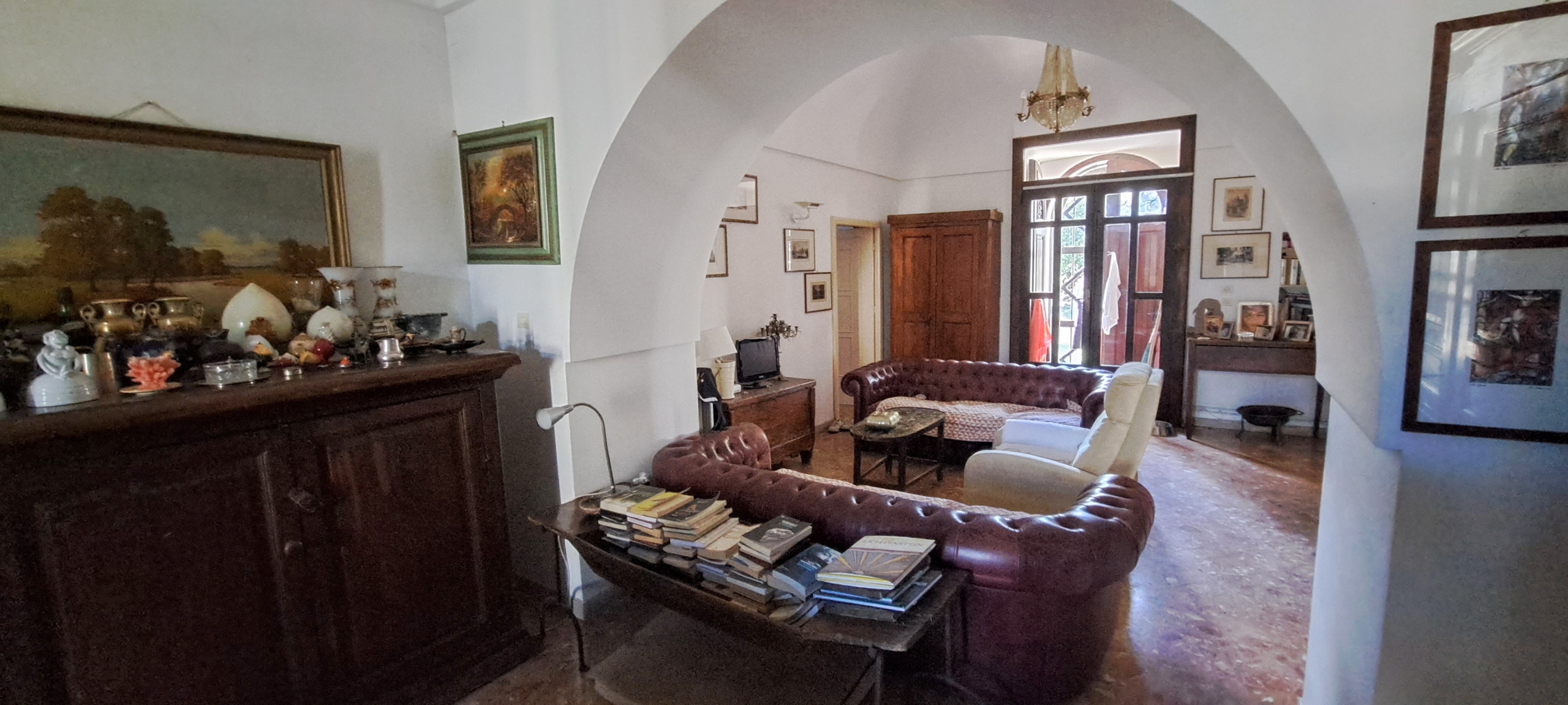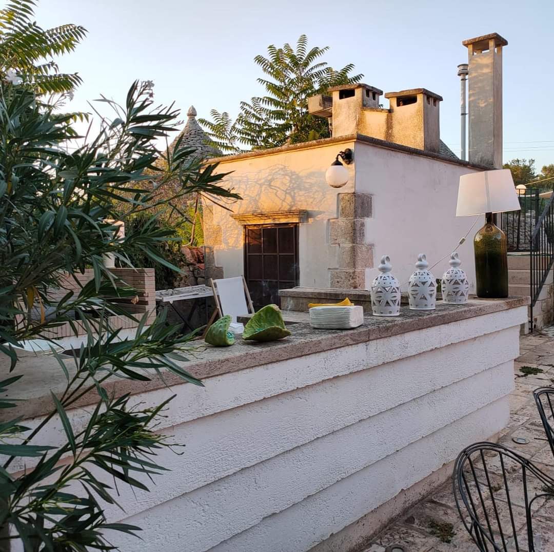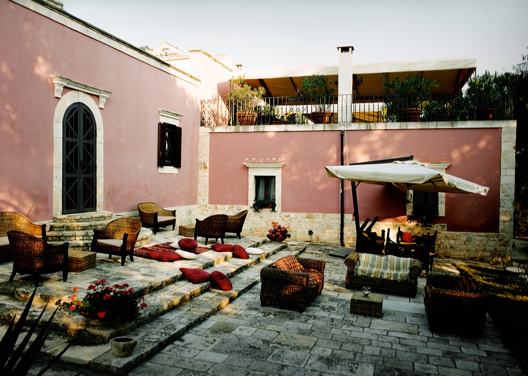 Un meraviglioso parco privato di circa 3.000 mq delimitato da alti muretti a secco separa e circoscrive la parte abitativa dal resto dei terreni. Il giardino è corredato da divani in muratura, gazebo/padiglioni in ferro battuto, corti private ed una splendida aia con pavimentazione in chianche antiche (recentemente restaurata).