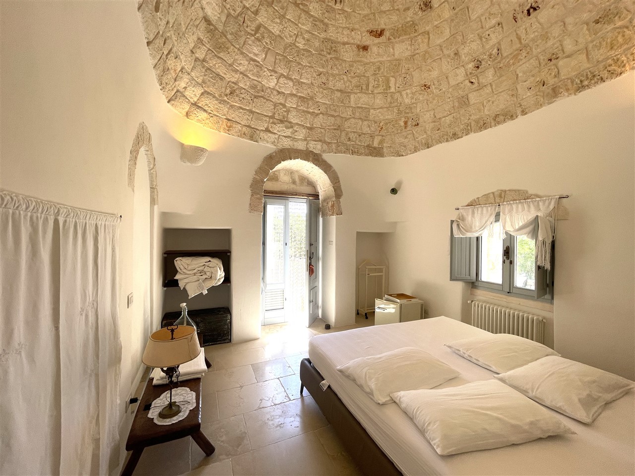 Proponiamo in vendita esclusivo complesso di trulli (7 coni) situato a metà strada tra Ostuni e Cisternino. La proprietà sorge in posizione panoramica con meravigliosa vista dominante sulla valle. Questo esclusivo complesso immobiliare si compone di sette trulli e una lamia con volte a stella, interamente realizzati in pietra e restaurati con grande attenzione alla conservazione degli elementi architettonici originari. L’immobile è caratterizzato da una residenza principale composta da ampia zona giorno, cucina a vista e camino, salotto, una camera da letto e un bagno. Accanto a questa, vi è un’altra residenza composta da tre camere da letto con bagno privato, ciascuna con accesso indipendente. È possibile, qualora si desideri, collegare internamente le stanze per utilizzarle esclusivamente come abitazione privata.